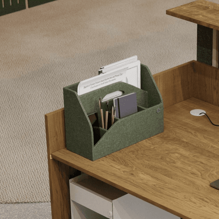 Korpus, Arbeitsplatte, Seitenwange, Ablageplatte: Natureiche Front (Paneel mit rundung nach oben): Grau Front (Paneel mit rundung nach unten): Stoffbezug in Append LDS4 (www.camirafabrics.com) Metallelemente (Gestell): Weiß Weitere Auswahlmöglichkeiten finden Sie hier. |