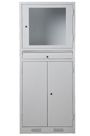 Industrie-PC-Schrank mit transparenter Monitortür und Tastaturfach GRAU