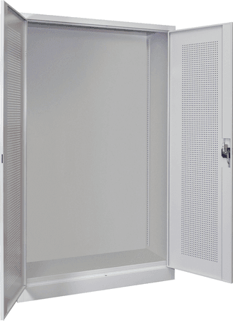 robuster, komplett verschweißter Stahlkorpus mit Vollblechtüren oder Lochfeldtüren (Quadratlochung 0,5 cm) - Auswahlmöglichkeit siehe oben |