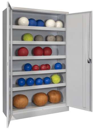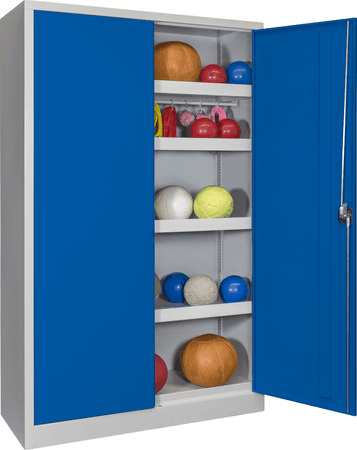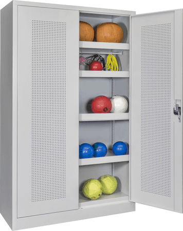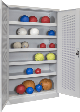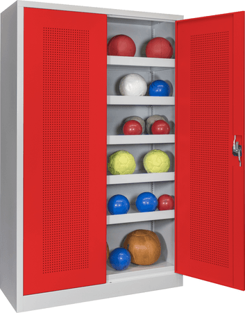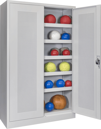 PAVOY Sportgeräteschrank | Ballschrank mit Flügeltüren | 195 x 120 x 50 cm mit Vollblech- oder Lochfeldtüren | große Farbauswahl
