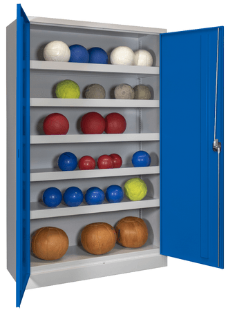 PAVOY Sportgeräteschrank | Ballschrank mit Flügeltüren | 195 x 120 x 50 cm mit Vollblech- oder Lochfeldtüren | große Farbauswahl