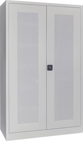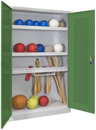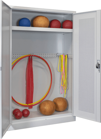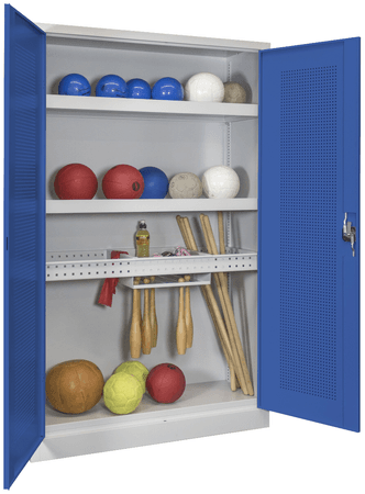 PAVOY Sportgeräteschrank konfigurierbar bis Vollausstattung | Ballschrank mit Flügeltüren | 195 x 120 x 50 cm mit Vollblech- oder Lochfeldtüren | große Farbauswahl