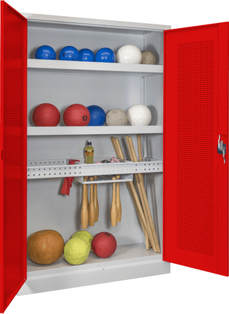 PAVOY Sportgeräteschrank konfigurierbar bis Vollausstattung | Ballschrank mit Flügeltüren | 195 x 120 x 50 cm mit Vollblech- oder Lochfeldtüren | große Farbauswahl |