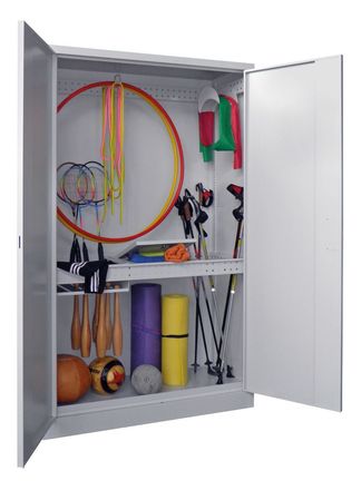 PAVOY Sportgeräteschrank mit Vollausstattung | Ballschrank mit Flügeltüren | 195 x 120 x 50 cm (HxBxT) mit Vollblech- oder Lochfeldtüren |