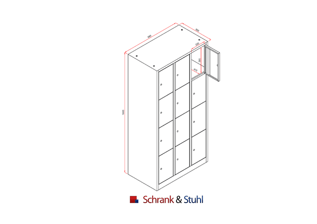 | Produkt | Schließfachschrank mit Sockel und 12 Abteilen |
