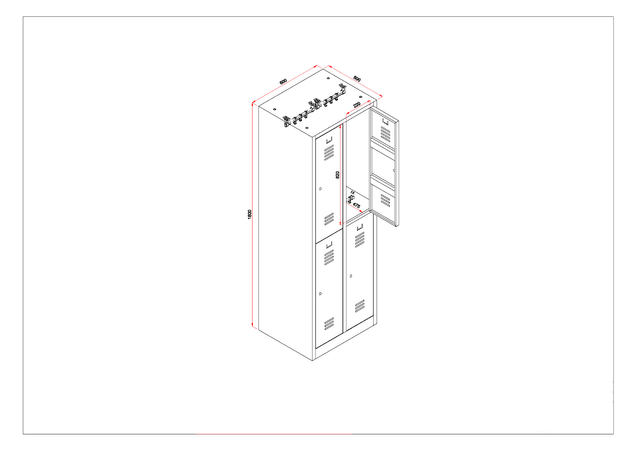 Spind mit 2x2 Abteilen 180x60x50 GRAU